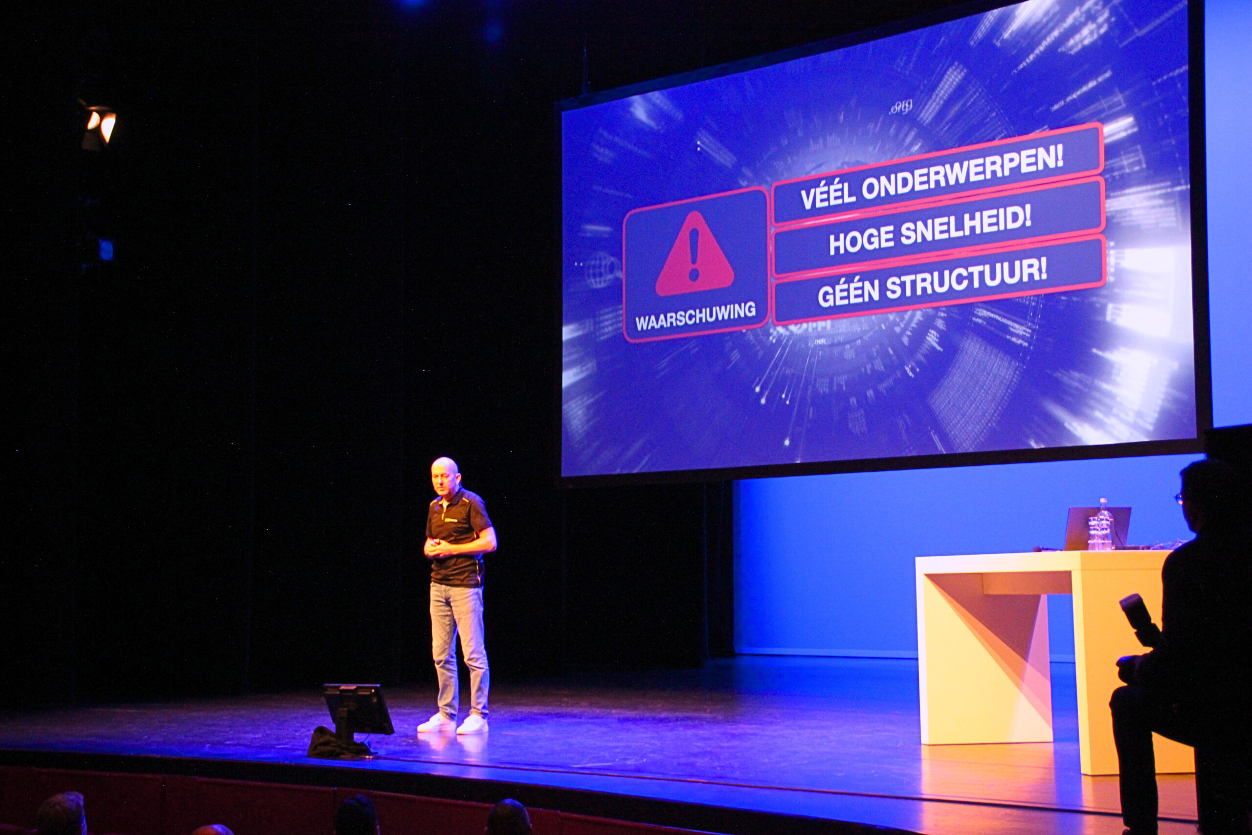 Dankzij waardevolle bijdragen van organisaties als Kadaster, Achmea, Belastingdienst, Luminis, Saxion, Profit4Cloud, Team Rockstars en Gemeente Apeldoorn werd het een dag vol kennisdeling, inspiratie en ontmoeting in Theater & Congres Orpheus in Apeldoorn.